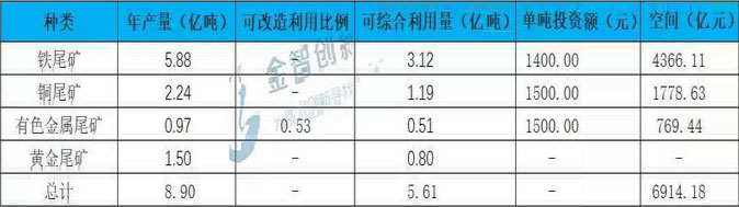 表1 我国尾矿综合利用市场空间