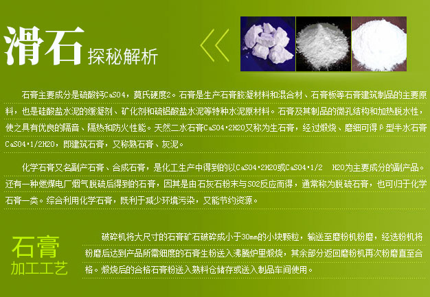 石膏主要成分是硫酸钙CaSO4,莫氏硬度2。石膏是生产石膏胶凝材料和混合材、石膏板等石膏建筑制品的主要原料,也是硅酸盐水泥的缓凝剂、矿化剂和硫铝酸盐水泥等特种水泥原材料。石膏及其制品的微孔结构和加热脱水性,使之具有优良的隔音、隔热和防火性能。天然二水石膏CaSO4 91影院,2H2O又称为生石膏,经过煅烧、磨细可得β型半水石膏CaSO4,1/2H2O,即建筑石膏,又称熟石膏、灰泥。。